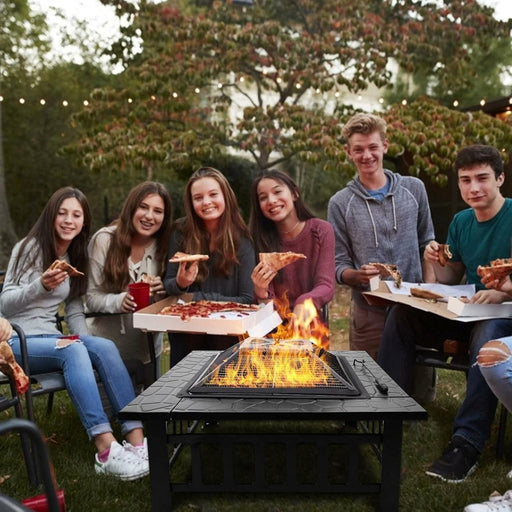 32 Inch Square Outdoor Metal Fire Pit with Mesh Cover and Poker