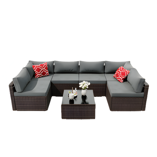 7 Piece Outdoor Patio Furniture Set, All Weather PE Rattan Sectional Sofa with Table