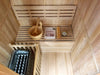 Made from smooth Canadian Hemlock, the sauna offers durability and a natural beauty that enhances any indoor setting. With an inside height of 70 inches and a heating capability up to 200 degrees Fahrenheit, it creates a powerful spa-like environment right at home.