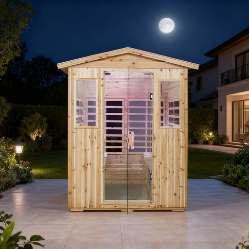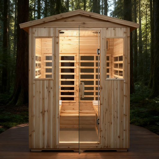Outdoor Four Person Far Infrared Sauna in Natural Old Fir Wood 2050W
